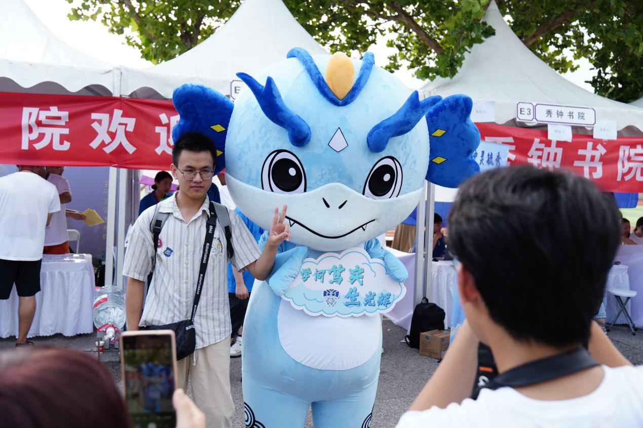 迎新现场,同学们在各院系妙语连珠的打卡展板前忍俊不禁,在围绕新生赠书《邓稼先传》开展的迎新活动中再次领悟“两弹一星”精神的传承,为学生艺术团精彩的“快闪”表演欢呼喝彩。