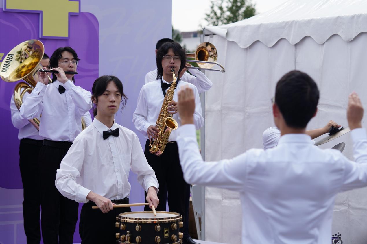 清华园内,学生服务中心(C楼)和紫荆学生公寓区前方的主干道上,红色拱门早已立起,遮阳帐篷依次排开,欢迎气球在紫荆操场上空轻快飘扬。