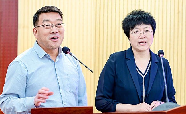 杨雪冬(左)、严洁(右)发言