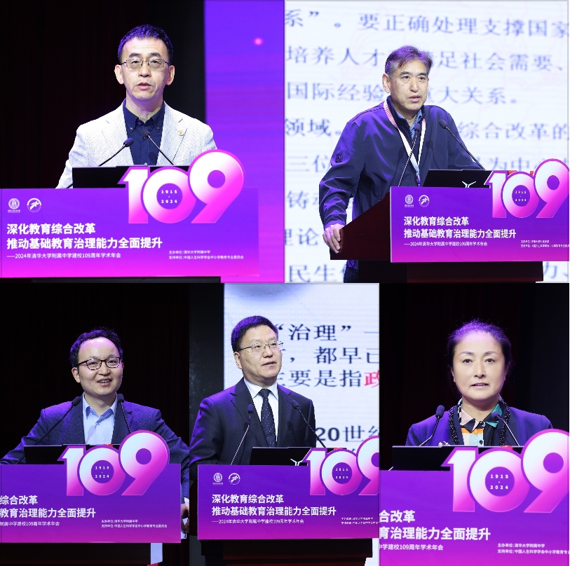 杨银付表示,清华附中在建校109周年之际举办主题为“深化教育综合改革,推进基础教育治理能力全面提升”的学术论坛,是学习贯彻落实党的二十届三中全会精神和全国教育大会精神的重要举措。建设教育强国是一项复杂的系统工程,要深刻把握教育的政治属性、人民属性、战略属性,坚持体制机制创新和科技创新“双轮驱动”,深化教育综合改革。要坚持科技是第一生产力、人才是第一资源、创新是第一动力;深入实施科教兴国战略、人才强国战略、创新驱动发展战略。要坚持党对教育工作的全面领导,在党的领导下深化教育综合改革,在党的领导下加快建设教育强国,在党的领导下办人民满意的教育。