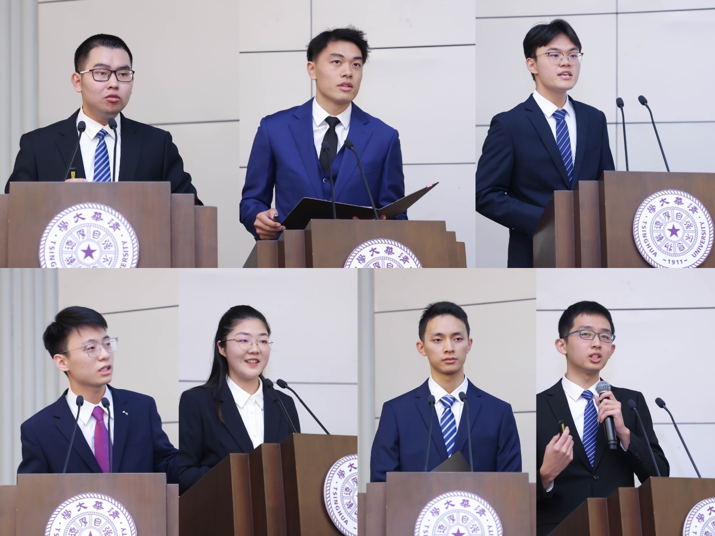 候选人分享(从左至右、从上至下依次为:丁恺睿、康吉赢、李晓川、仉振北、史明磊、叶卓睿、王飒、李昊恩)