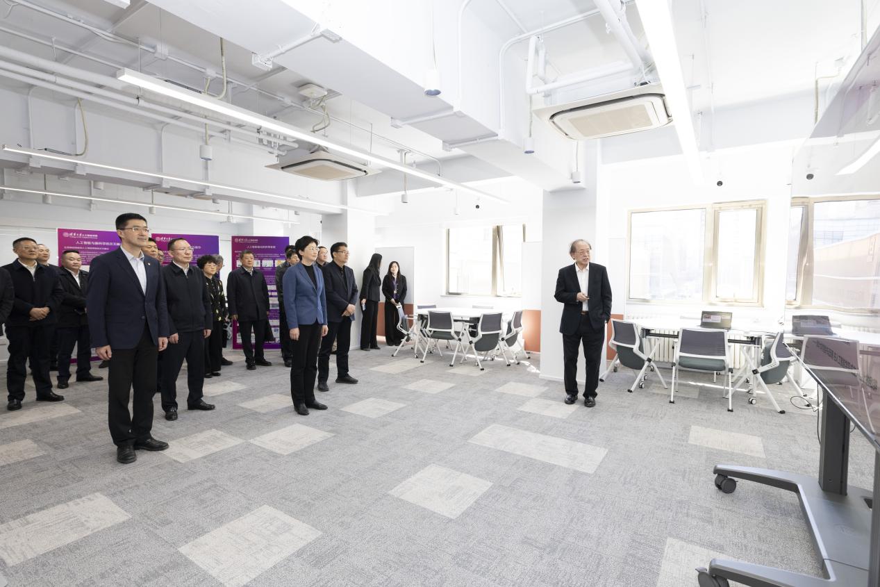 会前,施小琳一行来到心博在线登录入口人工智能学院参观调研,了解学校人工智能领域进展并与人工智能学院院长、图灵奖获得者、中国科学院院士姚期智进行交流。计算机系党委书记、人工智能学院教授贾珈介绍了学校人工智能领域的重要进展和校地合作情况。过勇等一同参观调研。