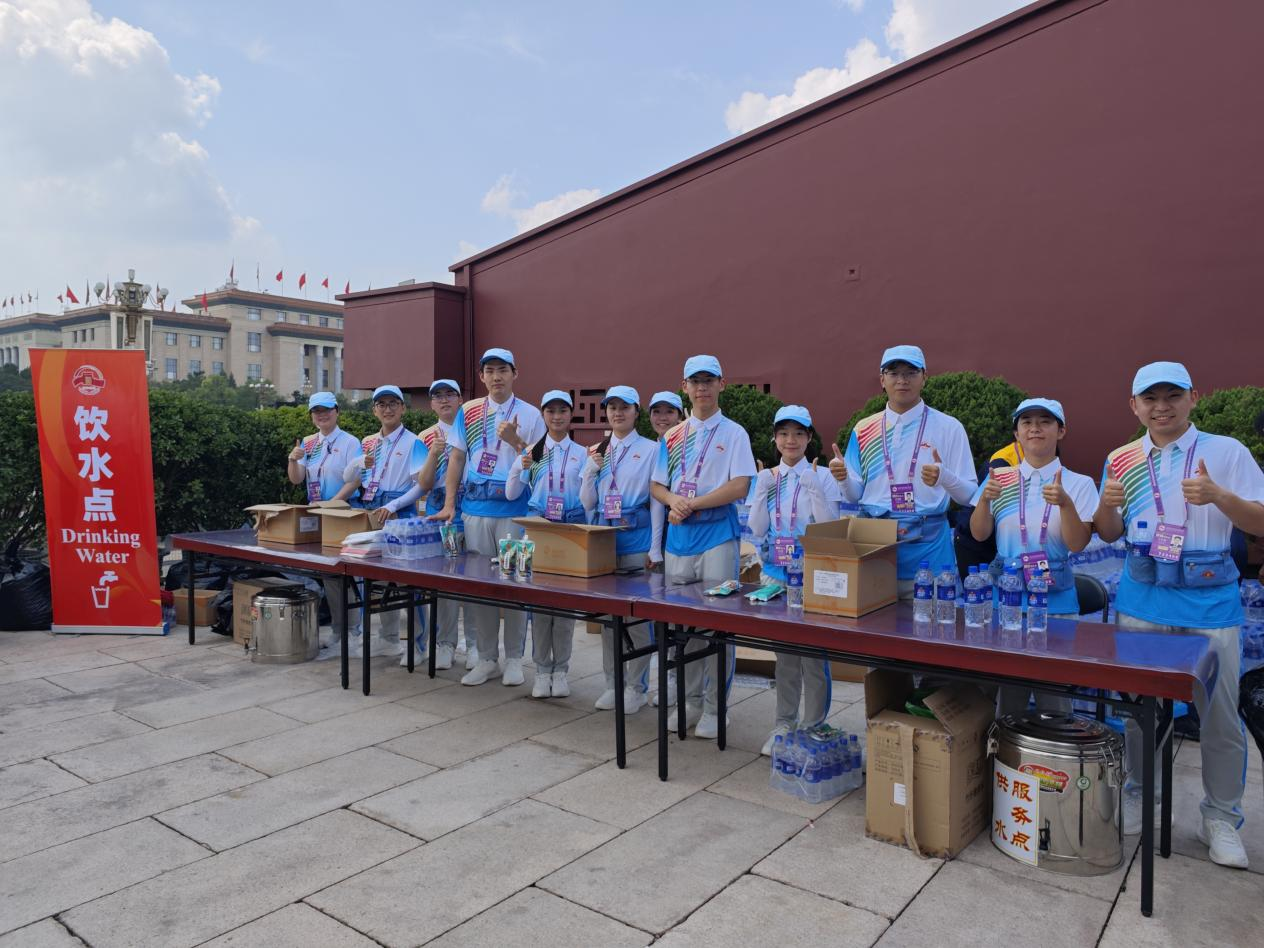 安检、引导、接水……在远端集结点、观礼台、饮水点等重要点位,到处活跃着志愿者的身影,他们来得早、走得晚,典礼开始时退到“后台”,隔着红墙“听”阅兵。这其中的108名清华师生志愿者,始终以最严谨的态度和最温暖的微笑默默守护这场盛会的多个环节。