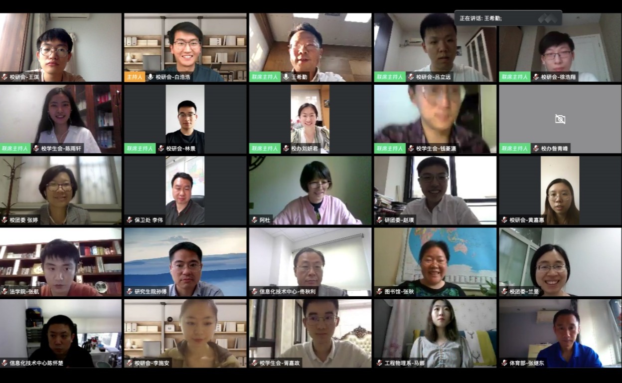 首页网5月18日电(通讯员 柳青 吕立远)5月14日下午,2019-2020学年春季学期第一次校领导接待日以线上会议形式举行,常务副校长王希勤出席本次接待日。校长办公室、总务长办公室等16个部处的相关负责人,校学生会代表,校研究生会代表,以及来自10个院系的11名学生代表参加会议。
