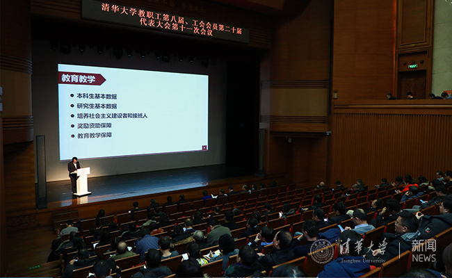 王希勤详细报告了2018-2019学年学校资源配置、运行管理、后勤保障和附属机构等多方面工作进展和主要成效,并就与教职工生活密切相关的问题向与会教职工作了通报。王希勤强调,我国正处于近代以来最好的发展时期,清华的发展随着国家的发展也达到了新的历史高度,更创新、更国际、更人文的清华,将更加坚定地走内涵式发展道路,更加从容、更加自信地静下心来做真正有长远意义的事情,为学校在新百年新阶段的长远健康发展奠定坚实基础,为党和国家培养更多肩负使命,追求卓越的优秀人才,为实现两个100年奋斗目标,实现中华民族伟大复兴中国梦作出新的更大的贡献!
