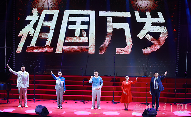 特邀节目也将晚会氛围推向高潮。清华附小童声合唱团带来《今天是你的生日》,天籁童声唱响综合体育馆,以最纯净的声音表达对祖国的真挚祝福;著名男中音歌唱家霍勇带来雄浑高亢的《当那一天来临》,彰显中国军人风貌;苏世民书院的同学们带来一曲《我和你》,以不同的语言传达多元文化,碰撞出绚丽色彩;晚会结束之际,各联队指挥和领唱带来惊喜表演,带领全场师生共同合唱《我爱你中国》,表达对祖国最深沉的热爱。