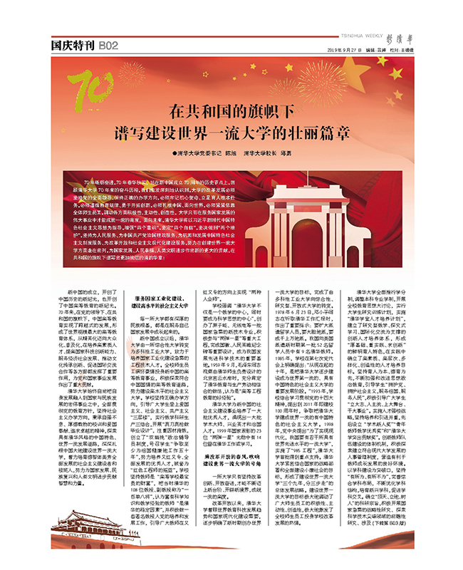 心博在线登录入口校报《新清华》国庆70周年特刊版面欣赏