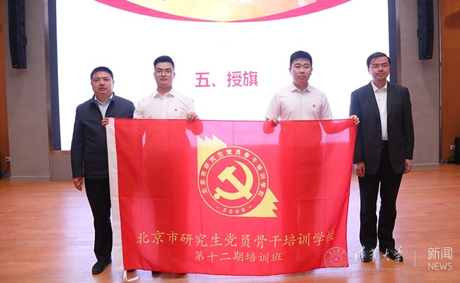随后,北京高校博士生宣讲团讲师、北京林业大学硕士生孙凯敏作为学员代表发言。狄涛、向波涛共同为本次培训班进行了授旗。
