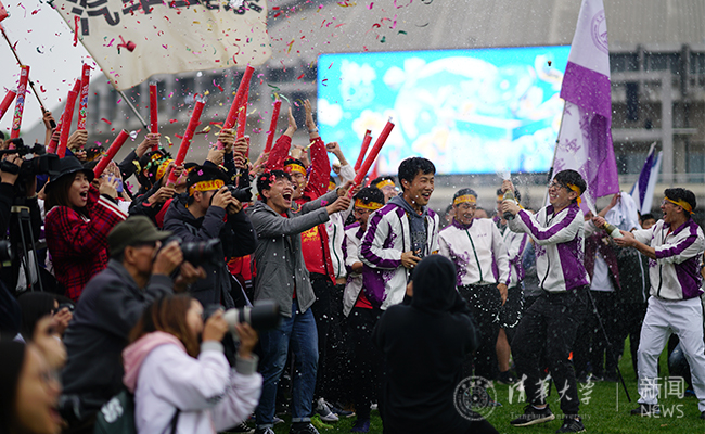 在现场师生的欢呼声中,邱勇、陈旭带领出席闭幕式的校领导率先出发,体育代表队队员、参赛运动员和各院系师生紧随其后,一面面旗帜在傍晚的东大操场迎风飘扬、一路向前,清华人以奔跑的姿态和有力的步伐践行着“无体育,不清华”的精神。