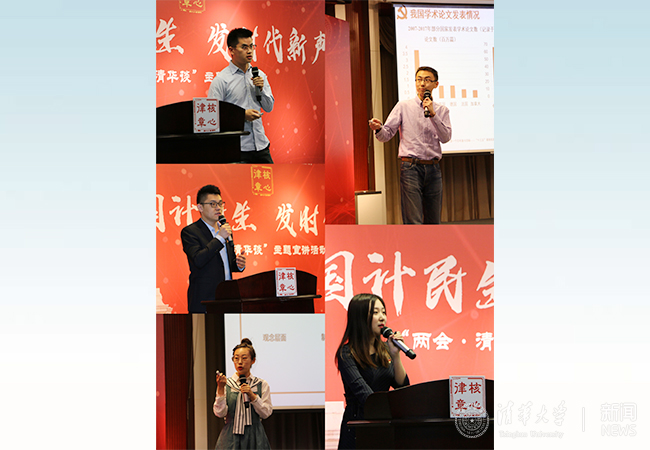 环境学院博士生何源结合两会议题,围绕“生态文明建设中的草原生态”这一主题,详细介绍了我国生态文明建设的精神内涵、新中国成立以来我国生态文明建设之路和我国生态文明建设所带来的启示。五道口金融学院博士生李冲以“新时代党的强军思想与强军实践”为题,论述了党的十八大以来,人民军队实现政治生态、组织形态、力量体系、作风形象的整体性重塑。马克思主义学院博士生张磊从“精准脱贫,一个也不能少”话题展开,结合自身在海内外实践与宣讲的经验,通过列数据、举实例、谈理论等方式,与大家分享理论和实践层面的精准脱贫。