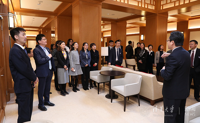 研修班班长、国际教育办公室副主任廖莹代表班委会总结。国际处副处长孟波介绍了学校全球战略的最新进展。苏世民书院院长助理邱嵩介绍了苏世民书院的整体情况,并带领学员们参观了苏世民书院。最后,全体嘉宾、学员在苏世民书院中庭合影留念。