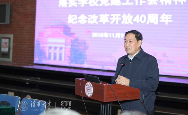 会上,贾曦首先代表学校党委传达了学校党建工作会精神。他说,会议总结了党的十八大以来学校党建工作取得的进展和成绩,着重分析指出了当前工作中存在的问题,对全面加强和改进学校党的建设作出了重要部署,对全校师生员工提出了希望和要求。他解读了会上下发的学校党委《关于新时代全面加强和改进学校党的建设的意见(征求意见稿)》的制定过程和内容意义。他说,离退休教职工党建工作在过去一段时间发展特色显著,包括注重工作研讨,加强交流培训;落实完善党员联系群众责任制;不断丰富老少共建的形式和内容;创新开展“六连环”特色组织生活。下一阶段,学校党委将进一步加强对离退休教职工党建的分类指导和离退休教职工党支部建设。