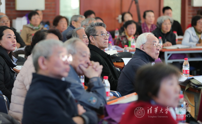 离退休教职工代表认真聆听现场讲话发言 李派 摄