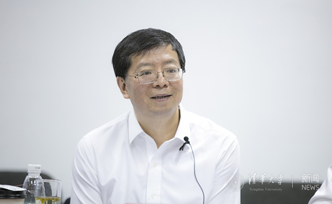 材料学院党委书记杨志刚主持调研座谈会。南策文院士作国家基金委基础科学中心项目进展报告。朱静院士、周济院士、常务副院长庄大明等与会教师分别就学院发展、学科融合、师资队伍、人才培养等方面发表意见建议。