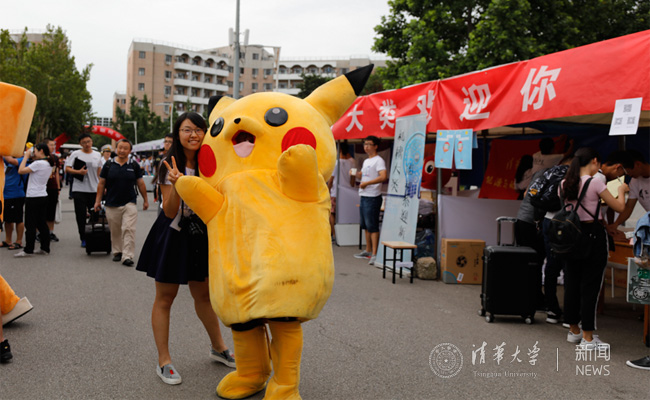 热情洋溢的笑脸、憨态可掬的吉祥物、迎风飘扬的条幅、清晰醒目的指示牌……都不约而同地在向2018级新生发出最温暖的问候:“美丽的清华园欢迎你的到来!”