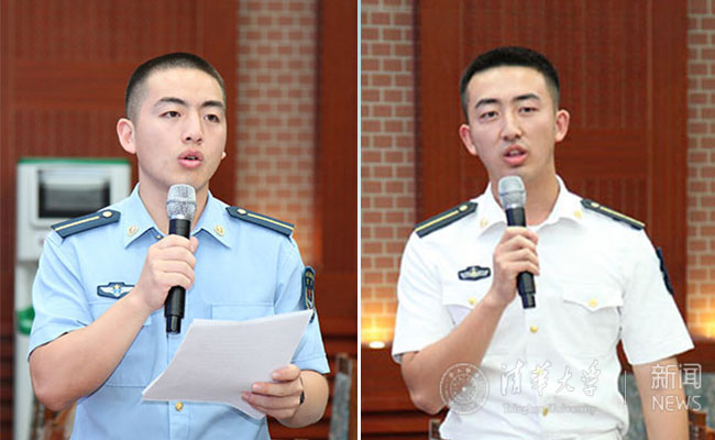 空军飞行学员罗洪云、海军飞行学员王鹏程分别发言