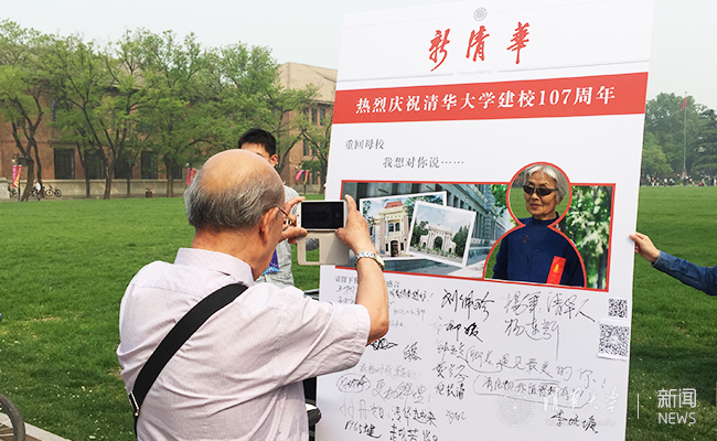 首页网4月29日电(记者 柳夏 学生记者 张舒媛)“卿美,遇见最美的你!”“祝愿母校清华发展越来越好”“毕业清华一甲子,永远不忘清华情”“想您了,明年再来!”