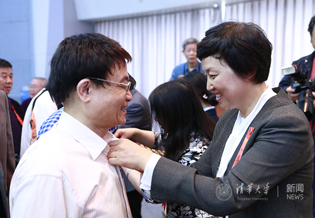 随后,陈旭以及电子工程系主任黄翊东、党委书记金德鹏等为老校友们佩戴了“为祖国健康工作50年”纪念徽章,并向他们表达了祝贺与祝福。