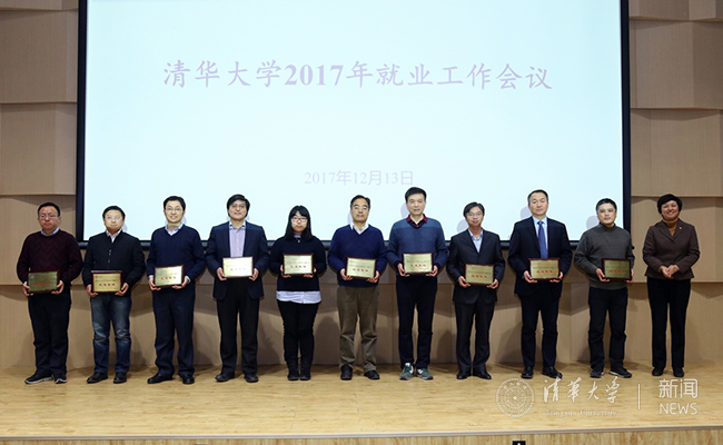 获得就业引导奖的院系代表合影。