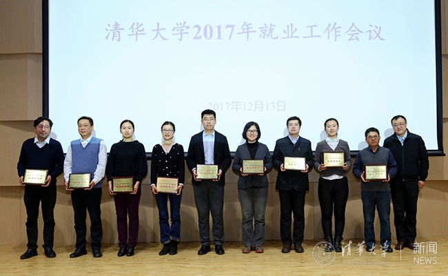 杨斌宣读了2016~2017学年度就业工作先进集体综合奖、就业引导奖、职业辅导奖和就业工作先进个人的获奖名单。陈旭、杨斌和王希勤分别为获综合奖、就业引导奖和职业辅导奖的院系颁奖。