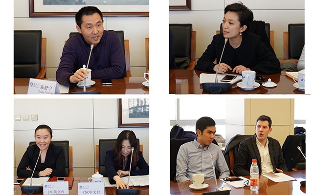 在座谈交流中,中国新华新闻电视网相关专家介绍了外宣平台的功能定位、核心理念、业务探索、人才队伍和机制建设情况。电视网的中、英文台作为新华社视频跨界融合平台,在传播策略和对外合作方面不断探索,努力向世界讲好中国故事、履行主流新媒体的核心责任。电视台新聘外专介绍了对中国媒体的见闻和思考,分享了加入团队的心得体会。会上还就“新时代新华社的国内国际角色担当”“假新闻泛滥背景下如何保证新闻真实性”“如何借力人工智能提升报道水平”等同学们感兴趣的话题进行了讨论和交流。