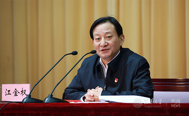 15日下午,江金权围绕党章修改背景、修改工作特点和十九大《中国共产党章程(修正案)》(简称“党章修正案”)主要内容作了全面阐述。报告从九个方面讲解了党章总纲部分的修改内容,分五个方面梳理了条文部分的修改内容,并结合具体条目对应的生活实例,将十九大党章107处修改系统、完整地呈现出来。