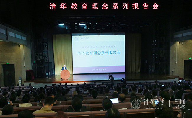 首页网11月1日电 10月26日,“清华教育理念”系列报告会首场报告在大礼堂举行。校长邱勇出席报告会并作开场讲话,教育研究院常务副院长史静寰作题为“立足教与学,践行清华人才培养理念”报告。教务处处长彭刚主持会议,全校任课教师及中层以上干部800余人参加。