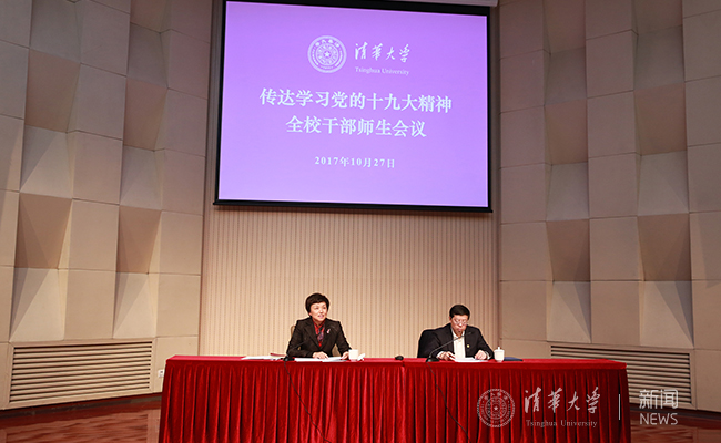 清华召开全校干部师生会议传达学习党的十九大精神