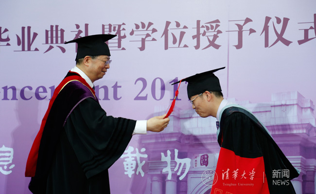 机械系博士毕业生赵杰亮说:“今天大家都带着喜悦激动的心情参加典礼,心中又有无数的不舍和眷恋。齐唱校歌时,我的眼泪在眼眶里打转,我为清华而骄傲。”他对李延武同学的发言提到的实验数据采集深有体会,认为清华人要做无愧于心的科研。