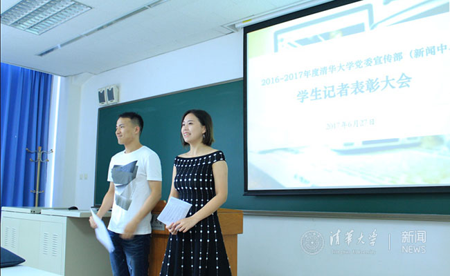 表彰会上,校报《新清华》、清华电视台、首页网和心博在线登录入口主页“清华映像”团队的代表分别交流了各部门学生记者近一年来的工作、特别是2017年校庆宣传工作的总体情况和感受。部分获奖代表分享了自己加入记者团、成为学生记者以来的成长经历和感受。
