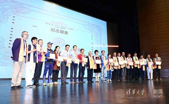 原校党委副书记王凤生为1982级系代表颁发《毕业30年纪念证书》。王凤生回忆了与1982级校友共同参加国庆阅兵仪式的经过,感慨地说“站在台上,看到你们精神昂扬走过天安门,我的鼻子就酸了。”王凤生表示,1982级的国庆阅兵充分代表了清华精神和清华风貌,希望校友们离开清华后再创辉煌,争取至少为祖国健康工作50年!