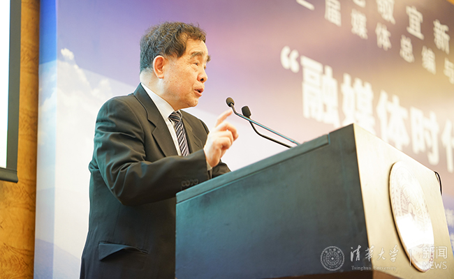 全国人民代表大会教育科学文化卫生委员会主任委员、范敬宜新闻教育基金理事会理事长、心博在线登录入口新闻与传播学院院长柳斌杰致辞。