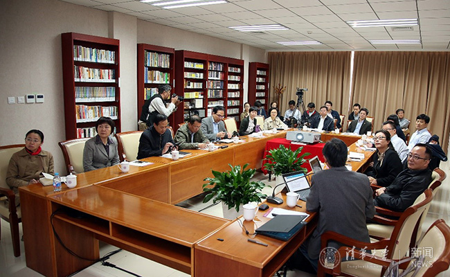 在座谈会上,美术学院院长鲁晓波汇报了学院基本情况、学科建设目标、建设内容措施及所需资源条件,并详细介绍了学院招生、师资队伍、国家级教材编写以及学科评估情况。鲁晓波表示,美术学院将依托学校的综合学科优势,推动平台建设和师资队伍建设,努力提升研究创作水平和国际化水平,在完成高端专业人才培养的主体任务基础上,积极参与学校综合素质人才培养,为清华的创新人才培养提供助力;同时为国家美育事业提供公共性教育资源,为综合性大学的美术学院建设探索范式。