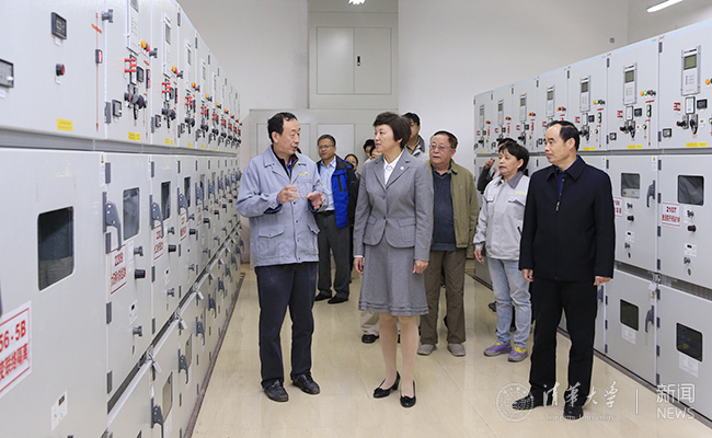 首页网10月11日电(记者 徐静) 10月9日上午,校党委书记陈旭、副校长吉俊民来到校内110千伏变电站,听取了关于变电站增容改造的工作介绍,并与参与改造的工作人员进行交流。