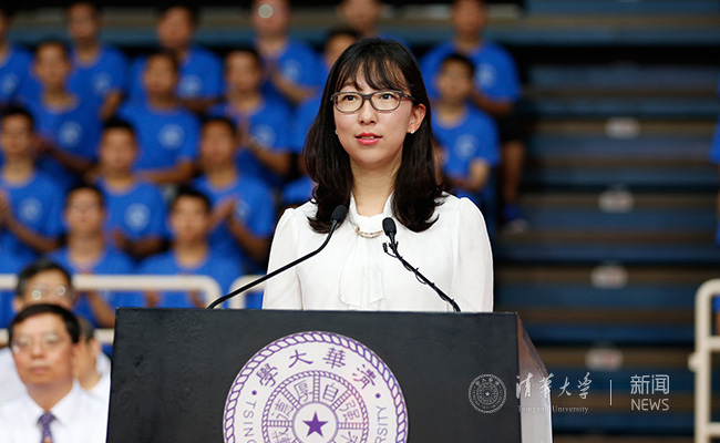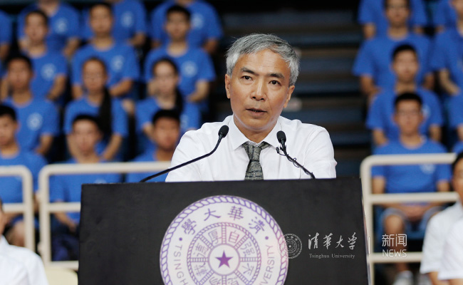 校长邱勇代表全校师生员工,对新同学的到来表示热烈的欢迎,并祝愿同学们在清华园里扬起理想的风帆,挥洒绚烂的青春!