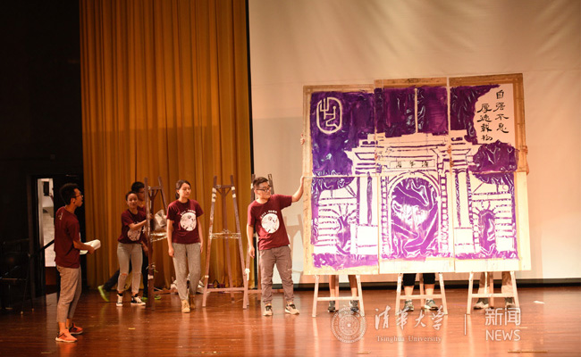 在新生骨干培训汇报课上,美术学院新生进行主题展示。
