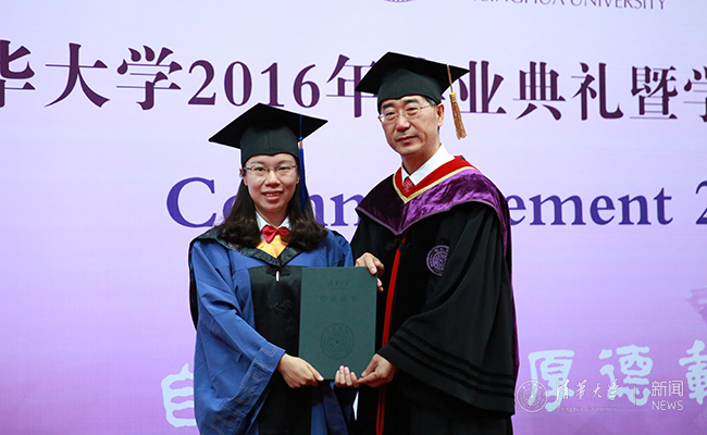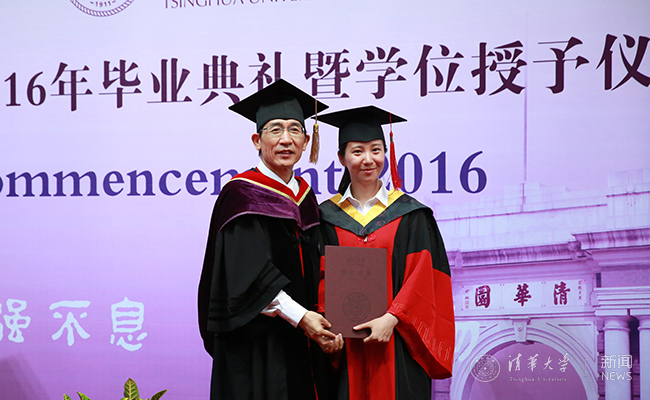 环境学院2013级博士生陈熹作为毕业生代表发言。她向辛勤培养自己的母校、师长和亲友们表达了由衷谢意,并回忆了在清华的学习和生活经历。她曾经连站军姿都晕倒,在校期间刻苦锻炼,拿到73个马杯单项冠军,连续十年夺得女子三项全能金牌。全场不时爆发热烈的掌声。陈熹说,清华热情的体育传统感染了她,“为祖国健康工作五十年”的清华体育精神勉励她勤奋坚持方能造就不凡,追求卓越才能超越自我。未来无论从事怎样的工作,作为清华人,都应该把个人价值融入到国家发展和人类进步的宏伟事业中。今天是一个新起点,未来人生路将继续迎风远航。
