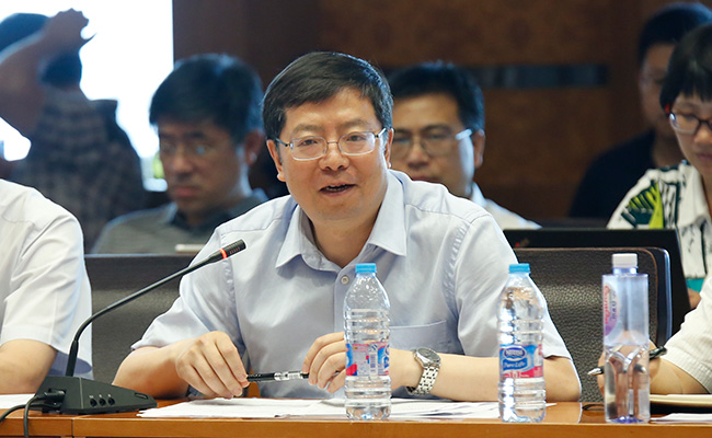 在自主交流环节,核研院书记唐亚平、外文系主任颜海平、生命学院党委书记陈应华、建筑学院书记边兰春、机械系副主任汪家道、土水学院院长张建民先后发言,就本单位的有效经验、困惑难题、执行环节,以及对学校协调配套工作的期望等方面展开讨论。