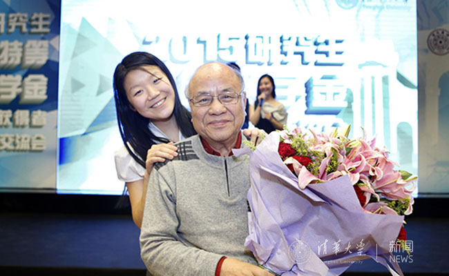 特奖获得者周滢垭与导师倪维斗院士现场合影。常志东 摄