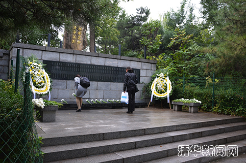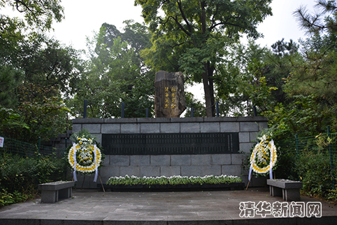 祭奠后的“祖国儿女,清华英烈”纪念碑。