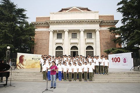 会后,清华附中学生合唱团的100名同学在清华大礼堂外,用他们青春的歌声,唱起了对百年附中的祝福,《清华附中校歌》响彻清华园。他们用歌声呼吁更多的人能关注本次活动,同时能够“多读书、读好书”,让书香不仅飘满校园,更要传递给社会的每个角落。