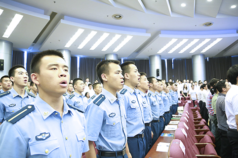 7月12日下午,2015届国防定向生、飞行学员毕业典礼暨赴军队工作毕业生出征仪式在主楼后厅举行。记者 张 宇 摄