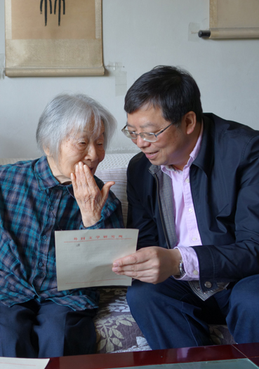 邱勇、陈旭还关心地询问杨绛先生的饮食起居等情况,表示看到学长的身体和精神状态很好都非常高兴,希望等天气再暖和一些邀请学长回到清华园看一看。