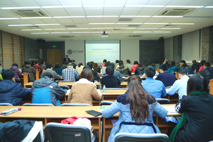 经管学院副教授曲庆作专题讲座。记者 苑 洁 摄