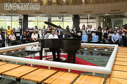 捐赠仪式的最后环节,是赵元任先生最著名音乐作品《教我如何不想她》的现场伴奏和演唱,这首乐曲是1926年在清华园创作的。社科学院2013级本科生林子秋同学受邀演奏,全场师生和赵元任先生家人共同合唱,充分表达了对赵元任先生无限的景仰和缅怀之情。