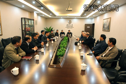 图为顾秉林院士一行与深圳研究生院院务会成员亲切交谈。