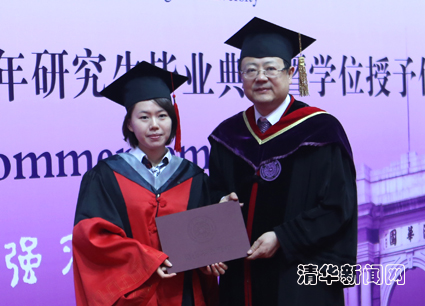 毕业生代表、物理系博士生张金松与大家分享了自己在清华十年学习科研生活的感悟。他以自己参与发现量子反常霍尔效应的科研经历为例,与大家分享了科研中面临挑战与困难时坚持不懈取得成就的心得体会。