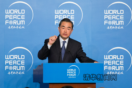 图为外交部长王毅在论坛期间发表演讲。学生记者 王皓冉 摄