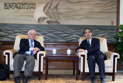 图为袁驷(右)会见美国乔治梅森大学教务长Peter Stearns教授(左)。记者 智 斐 摄