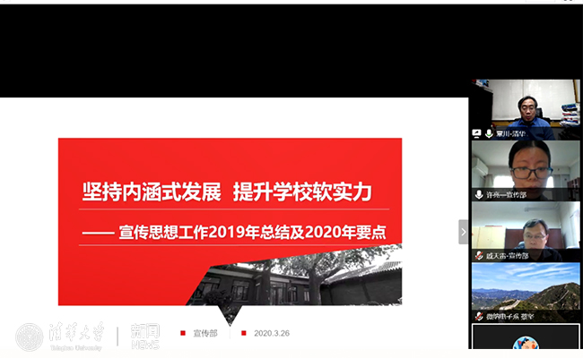 按照学校党委工作总体部署,2020年将继续完善“大宣传”工作体系和机制、建强思想政治理论武装体系、完善意识形态工作制度建设并夯实对基层一线的责任要求、健全全校思想政治工作机制、统筹精神文明建设和社会主义核心价值观教育、增强新闻舆论工作综合能力、全面抓好全球传播工作、加强网络文化阵地管理和内容生态建设,同时面向110年周年校庆等重要任务和节点认真策划组织、共同唱响“清华声音”。